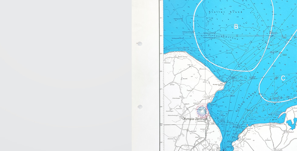 Foldout map of Kiel showing the racing areas for each boat class in the sailing events